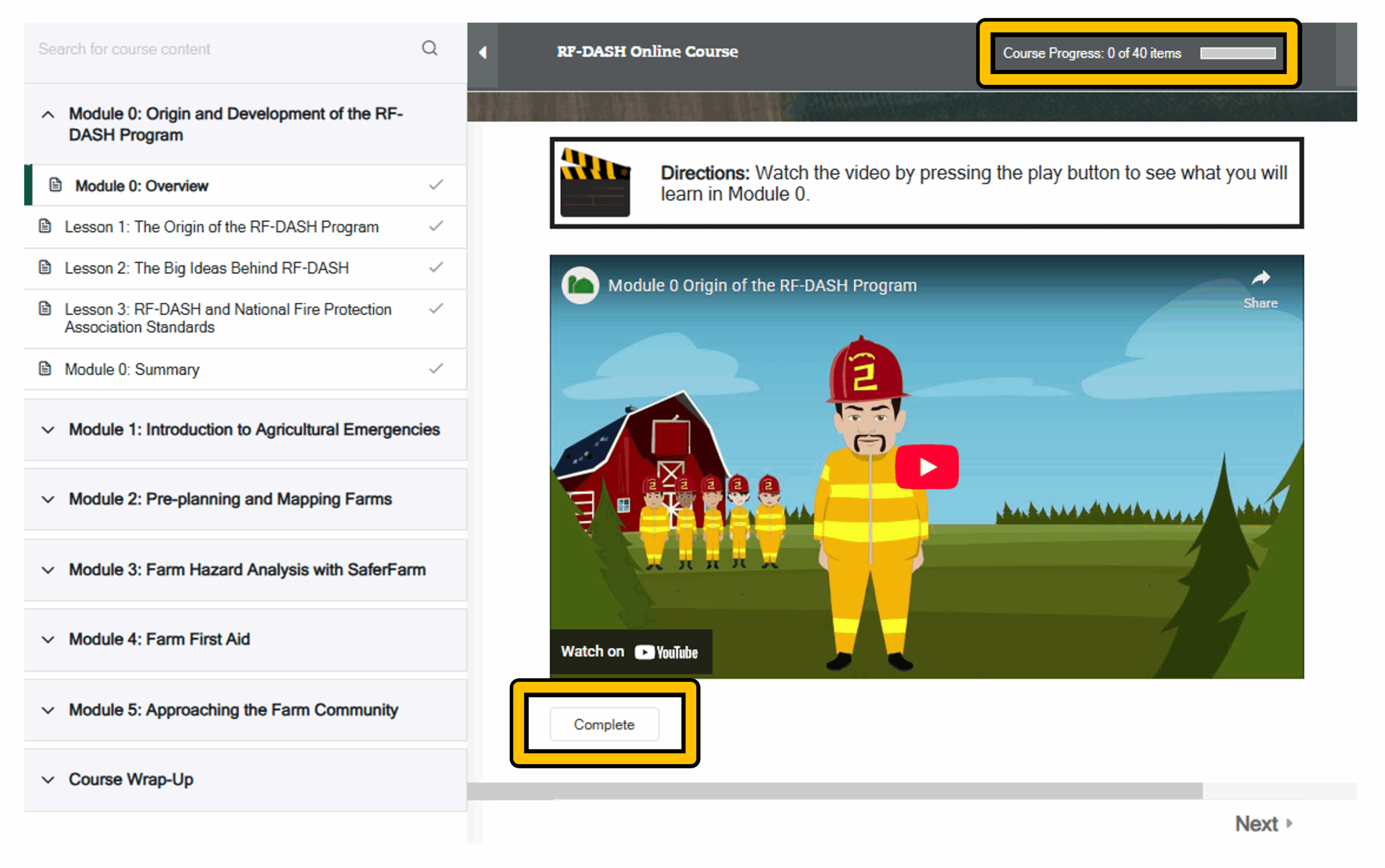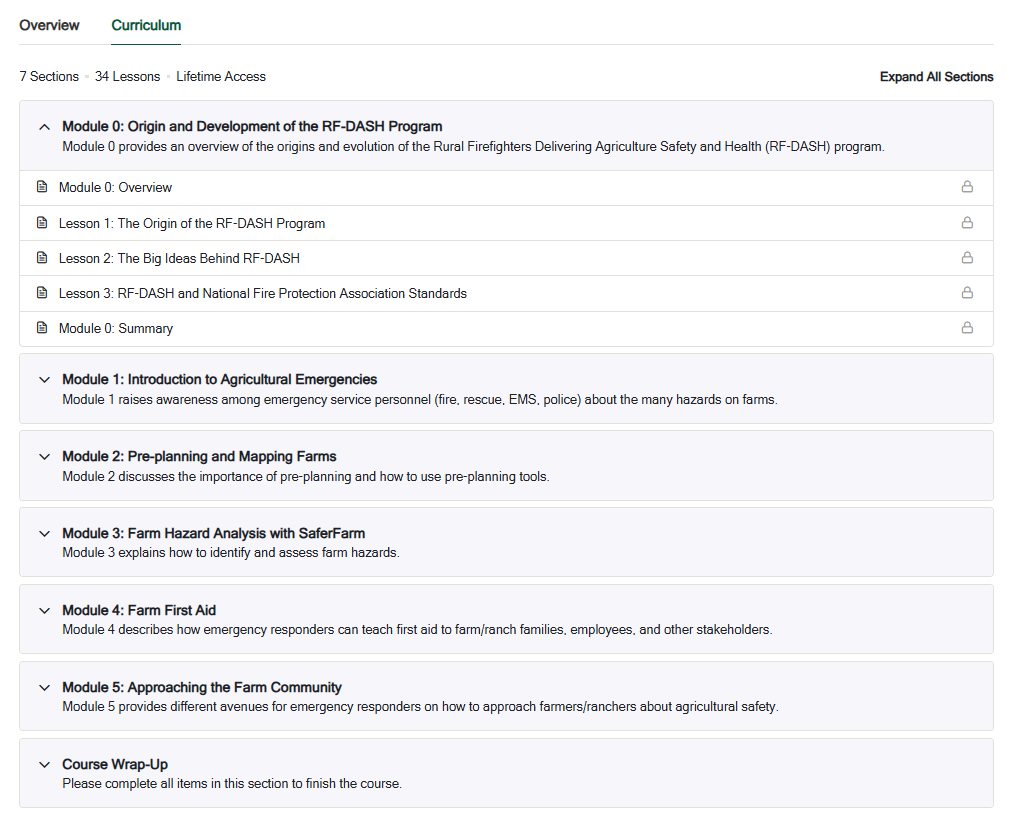 Module 0 provides an overview of the origins and evolution of the Rural Firefighters Delivering Agriculture Safety and Health (RF-DASH) program.