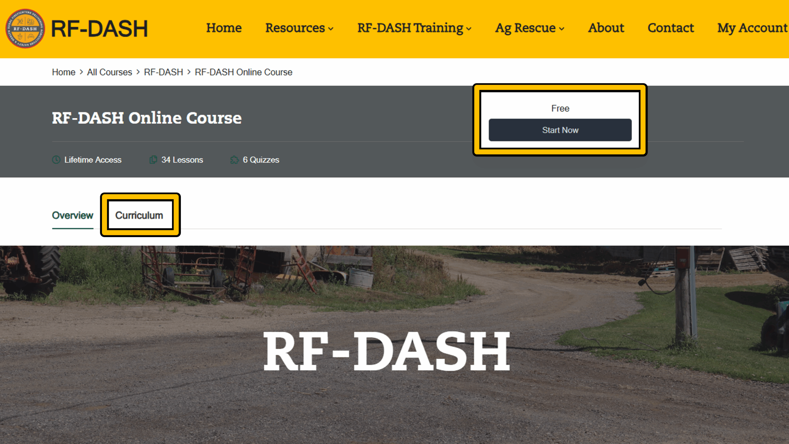 Now, let’s start with Module 0: The Origin and Development of the RF-DASH program, to learn why this program was created. Scroll to the top of your screen and select the Curriculum tab. You may need to enroll in the course first!